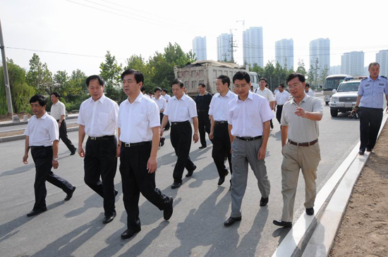 9月4日上午,濰坊市委副書記、市長許立全在副市長劉偉和建設局局長李廣東等陪同下視察了玄武街改造工程。集團公司董事長徐鵬強陪同許市長一行在現場實地視察并介紹工程有關情況。 視察中,許市長認真聽取工程介紹,仔細察看瀝青罩面、花壇緣石鑲貼、路面雨污水口與路面交接等細部工程處理情況,對工程的精細化管理給予充分肯定和較高評價;在白浪河橋工程現場,許市長實地察看了第六分公司正在進行的降水施工法,對工程進展情況表示了滿意。看到局部地段因拆遷影響人行道工程進展時,許市長要求相關部門加快工作進度,積極為施工單位創造條件,早日修好這條縱貫東西、五區連橫、商業娛樂集聚的交通要道,造福濰坊人民。