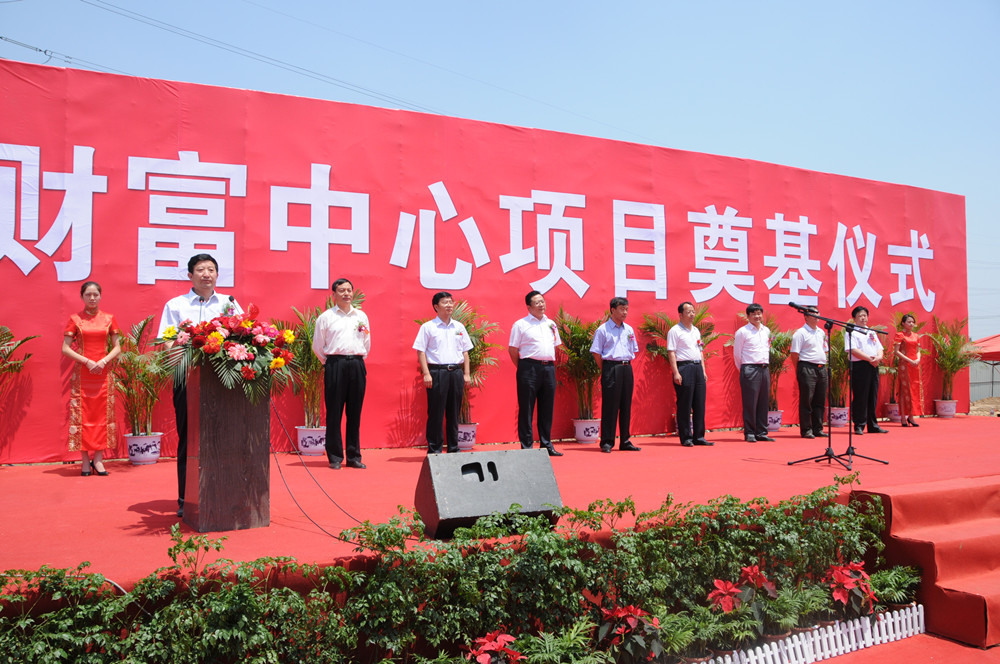 5月28日,財富中心項目舉行奠基儀式。在主席臺的領導及嘉賓有:高新區黨工委委員、管委會副主任譚建民,高新區建設局黨委書記、局長鐘光文,高新區新城街辦黨委書記杜月新,濰坊金正房地產開發有限公司董事長張汝建,聯合潤通水務有限公司副總經理胡義,濰坊金正房地產開發有限公司總經理匡衛東。 集團公司董事長徐鵬強、總經理朱九洲出席奠基儀式。參加儀式的還有高新區管委會有關部門的領導,集團公司第四分公司、安裝分公司、裝飾窗業分公司部分員工,濰坊金正房地產開發有限公司部分員工。 財富中心項目位于高新區勝利街以北、志遠路以東,項目占地1.4萬平方米,總建筑面積為13.6萬平方米,整個項目分為兩期施工,第一期為按五星級標準建設的財富國際大酒店(地上27層地下3層,建筑面積5萬平方米),二期工程為170米超高建筑(地上38層,地下3層,建筑面積為8萬平方米)。項目由濰坊金正房地產和深圳聯合潤通水務有限公司聯合開發。整個項目建設由第四分公司負責實施。 財富中心項目,是金正房地產公司投資打造的又一城市綜合體項目。此前,已完成了總建筑面積達28萬平方米,濰坊第一個城市綜合體項目--財富廣場的開發。