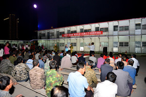 2015年5月21日晚,主題為“中國夢?勞動美”濰坊市總工會職工藝術團慰問演出在集團中央商務區工地現場舉行。演出依托第四分公司實施,地點選擇了徐志明項目部辦公室室外小廣場。中央商務區的第二、第四、安裝、裝飾、第二裝飾、裝飾窗業分公司的工地員工代表、專業勞務工人現場觀看了演出。 19時30分,演出在一首合唱《咱們工人有力量》中開場,40多名來自藝術團的演員們為大家表演了舞蹈、合唱、獨唱、京劇等精彩的節目,表演中,演員們還走到勞務工人中與大家握手互動,對這些奮戰在施工一線的勞動者們表示感謝和慰問。