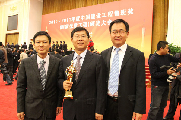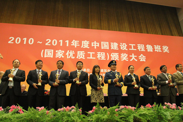 11月7日,由中國建筑業(yè)協會主辦的2010-2011年度中國建設工程魯班獎(國家優(yōu)質工程)頒獎大會在北京人民大會堂隆重舉行。集團公司董事長徐鵬強以及魯班獎工程——北川人民醫(yī)院承建單位、參建單位代表胡曰俊、于社強參加頒獎大會。參加本次大會的有各省、自治區(qū)、直轄市建筑業(yè)協會(聯合會、施工行業(yè)協會),有關行業(yè)建設協會和其他相關單位的負責人以及獲得魯班獎的承建單位和參建單位代表共計1500余人。
