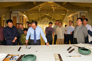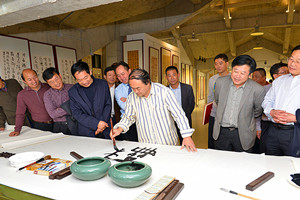 開幕式之后,與會領導、嘉賓和會員參觀了設在“昌大美術館“的劉良峰個展作品,書法家們還現場潑墨題字獻寶。另外,上午活動之余,與會人員還參觀了“泰和上筑”樓盤。