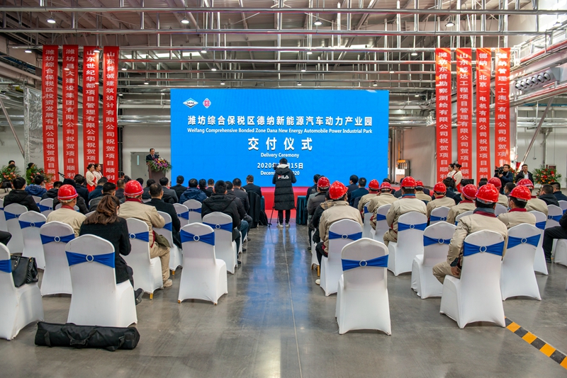 2020年12月15日上午,濰坊綜合保稅區德納新能源動力產業園交付儀式在項目現場舉行。集團總經理朱九洲出席儀式并與出席儀式的各方領導共同啟動項目。綜合保稅區領導和有關部門負責人朱蘭璽、張華、周國、劉珍榮、竇秉超、房偉、闞永美、徐海波,德納中國區總裁馬庫斯·金、德納亞太區市場傳訊及政府關系總監文君竹、德納(山東)電機有限公司總經理朱陽城等出席交付儀式。集團二建公司、安裝公司、機施公司、三裝公司以及德納公司、威達監理、世紀華都項目管理公司有關領導和員工代表參加交付儀式。交付儀式上,播放了《德納項目建設紀實片》,濰坊綜保區黨工委書記朱蘭璽、德納中國區總裁馬庫斯·金分別致辭。綜保區四級專員劉珍榮宣讀了表揚通報,集團二建公司王昆山、魏鵬、三裝公司蘇梅新、安裝公司王立安、機施公司王強受到通報表揚。朱蘭璽為文君竹頒發優秀合作獎獎杯和榮譽證書,德納中國區總裁馬庫斯·金分別為張華、劉珍榮、綜保區投資發展有限公司頒發“企業發展貢獻獎”、“德納項目杰出貢獻獎”、“德納項目擔當作為獎”獎杯和榮譽證書。綜保區投資公司總經理徐海波向德納(山東)電機有限公司總經理朱陽城交付鑰匙。總經理朱九洲與馬庫斯·金、朱蘭璽、周國、文君竹、朱陽城等領導共同為廠房開啟啟動儀式。 交付儀式由綜保區黨工委委員、管委會副主任張華主持,交付儀式結束后,出席儀式的領導共同參觀了新建廠區并合影留念。 |