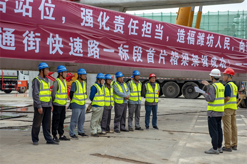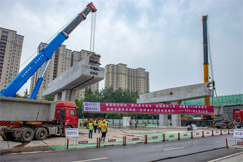 熱烈祝賀集團寶通街快速路工程第一片預制箱梁順利吊裝完成