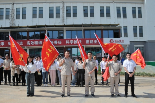 下午,在集團二建公司總承包施工的位于青州的濰坊工程職業學院新建學生公寓樓項目現場,舉行了全國、山東省、濰坊市三級青年文明號授旗儀式暨2023年度先進基層團組織頒獎儀式。兩支全國“青年文明號”、四支山東省“青年文明號”、兩支濰坊市“青年文明號”紅旗列列,彰顯光榮的歷史和突擊的力量;九個先進基層團組織獎牌生輝,昭示青春的燦爛和奮斗!