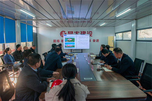 在隨后召開的座談會上,二建公司項目部匯報了項目前期工作和下一步的工作安排。鄭德前書記代表學院對項目的主體封頂表示熱烈祝賀,他表示,工程進行的非常順利,得益于施工單位、監理單位與學校相關部門間的齊心協力、共同奮斗,對大家的辛勤付出表示衷心的感謝,對施工單位前期的工作表示充分的肯定。他同時強調,該項目建設對于學院升本工作的重要性,并對項目下一步的工作提出了要求,要求各參建單位要繼續保持這種一如既往的精氣神,繼續發揚前期“能打硬仗、善打硬仗”的拼搏精神,保質、保量、保安全,確保項目按期竣工交付。集團公司總裁朱九洲現場部署項目沖刺階段任務,突出強調了三個重點:一是強化總包統籌,要求二建公司在后續工作中發揮“主心骨”作用,高效協調裝飾幕墻公司、安裝公司等專業單位交叉作業,確保工序無縫銜接;二是要抓實精細化管理,做好現場各種材料的管理,杜絕安全隱患,實現文明施工常態化;三是要在后續的施工中繼續高標準、嚴要求,全力以赴做好施工管理,確保工程按期高質量完成,為學校高質量發展賦能。